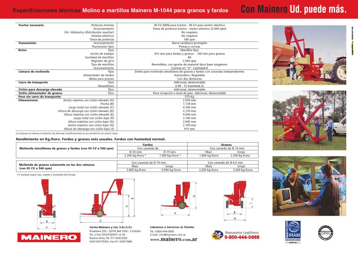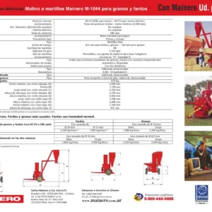 Este Molino a martillos permite preparar raciones en base a fardos y granos para animales vacunos, porcinos, etc. Su accionamiento se realiza desde la TDP de tractor y también puede utilizarse en instalación fija accionado por motor eléctrico.